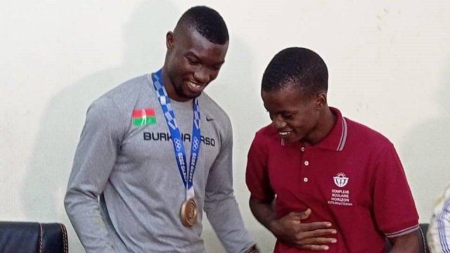 Le médaillé de bronze des Jeux olympiques de Tokyo 2020 dans la discipline du triple saut, Hugues Fabrice Zango, a encouragé les trois meilleurs élèves du Burkina Faso aux examens du CEP, du BEPC et du BAC, ce vendredi 13 août 2021 à Ouagadougou.